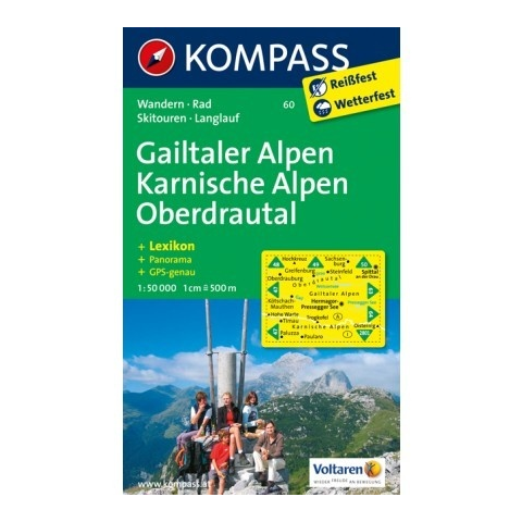 1 kép Kompass 60. Gailtaler Alpen, Karnische Alpen turista térkép, Oberdrautal turista térkép Kompass