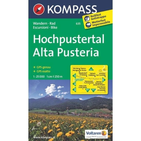635. Hochpustertal/Alta Pusteria, 1:25 000 turista térkép Kompass Vízálló fóliás térkép.