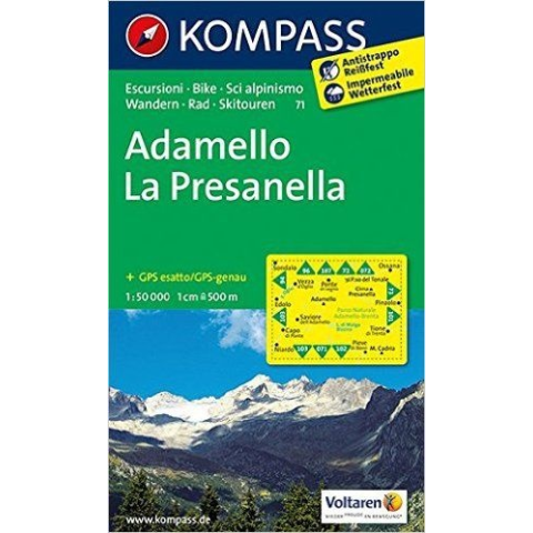 71. Adamello/La Presanella, D/I turista térkép Kompass Vízálló fóliás térkép.