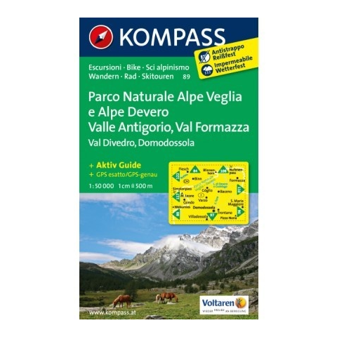 89. Parco Naturale Alpe Veglia e Alpe Devero, Valle Antigorio, Val Formazza, D/I turista térkép Kompass Vízálló fóliás térkép.