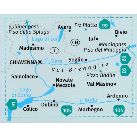 Chiavenna, Val Bregaglia, D/I 92. Chiavenna, Val Bregaglia, D/I turista térkép Kompass