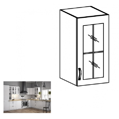 Teljes Kondela Felsőszekrény üveggel G30S, jobbos, fehér/sosna andersen, PROVANCE termékleírás