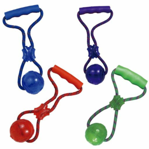 KONG Squeezz Ball with Handle zafír M (6,3cm x 31,7cm)