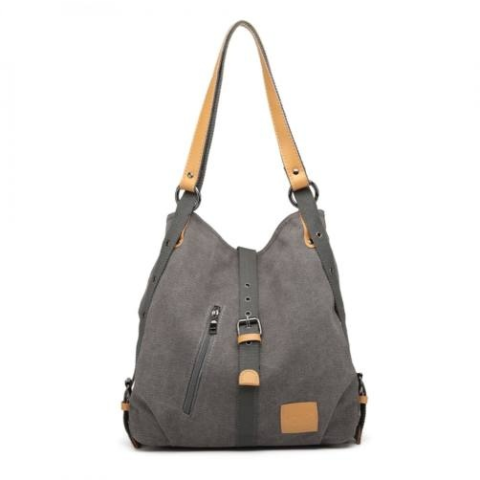 Nyugalmat és lazaságot áraszt ez a könnyed szürke vászon válltáska, amely hátizsákká is átalakítható. A táska elég nagy ahhoz, hogy A4-es méretű tárgyak magazin,füzet, könyv, tablet elférjen benne. Elől és hátul egy cipzáras zseb található, ahol apró tárgyakat tárolhatsz a könnyű hozzáférés érdekébe. A táska fő zsebe mágneses pattintással zárható. Ez a váll/hátitáska levehető és állítható hosszú vállpánttal rendelkezik, egyszerűen haszn
