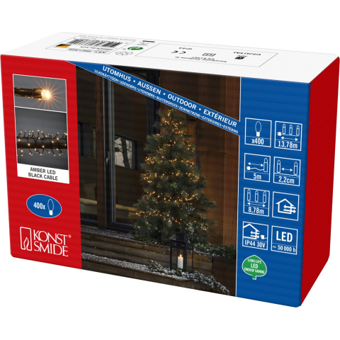Egyszerű, de mégis terjedelmes ünnepi világítást szeretne nagy erőfeszítés nélkül? Kompakt mikro LED fényeinkkel csodálatosan ragyogó dekorációs eredményt érhet el beltéren és kültéren egyaránt. A 400 borostyánsárga dióda közti kicsi távolságnak köszönhetően a fényfüzér sűrűbbnek és fényesebbnek tűnik. A Konstsmide hagyományosan nagy hangsúlyt fektet a megfelelő hosszúságú vezetékre. A kompakt mikro LED-ek esetében is nagyvonalúak voltak az 5 mét
