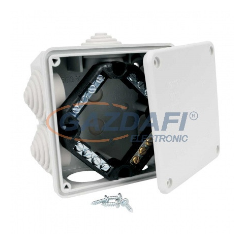 KOPOS 8111 LA Zárt falon kívüli doboz sorkapoccsal IP54 117x117x58 mm A kábelbevezető gyűrűk, a sorkapocs és a fedél csavarok a dobozban vannak elhelyezve, minden doboz zsugorfóliával van becsomagolva és címkézve van, szín - sötétszürke RAL 7012 KOPOS
