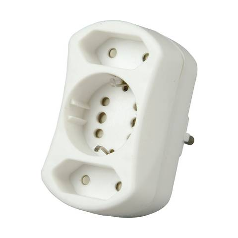 Átalakító, 3 csatlakozóaljzat, földelt, 90 fokban elforgatott