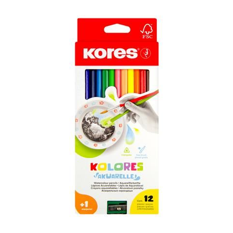 1 kép KORES akvarell ceruza készlet hegyezővel, ecsettel, 12 különböző szín (93812) (kores93812)