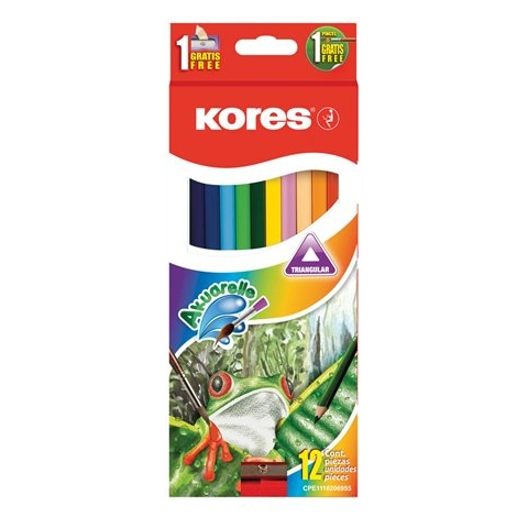 1 kép KORES Akvarell ceruza készlet, hegyezővel, ecsettel, KORES, 12 különböző szín