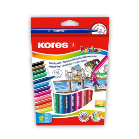 Filctoll készlet, kimosható, KORES Korellos, 12 különböző szín (IK29013) Légy Kreatív Otthon, REndszeresen Színezz, légy KORES. -ideális rajzoláshoz és színezéshez -névvel feliratozható -intenzív ragyogó színek -ideális iskolába -gyermekbiztos kupak -