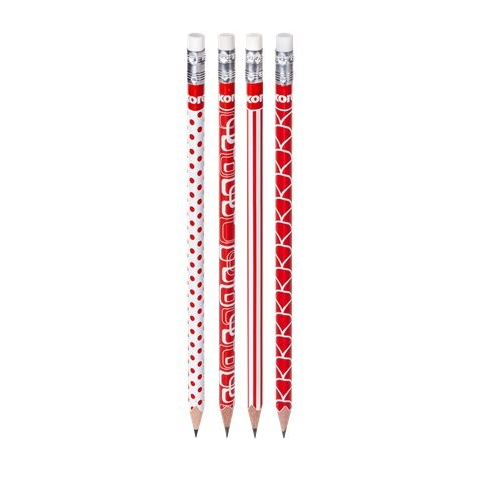 1 kép KORES Grafitceruza radírral, HB, háromszögletű, KORES, piros-fehér (IK92801)