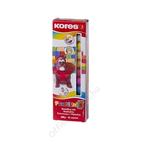 Gyurma, 200 g, 10 szín, KORES Plastilina (IK34010) könnyedén formázható, szagtalan gyurmakészlet 10 féle élénk, intenzív szín rugalmasságát hosszan megőrzi nem hagy foltot a színek összekeverhetőek ideális apró műalkotások készítéséhez Gyártó/első EU