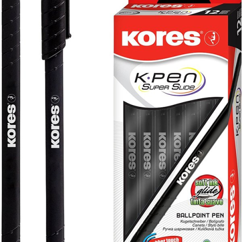 Golyóstoll - zselés tinta, fekete színű töltet, gumis markolat, 12 darabos csomag, vonalszélesség 1 mm, hegy szélessége 1 mm, kupakkal A minőségi KORES K0 Pen M - 1 mm, fekete - 12 db golyóstoll meghatározó tulajdonságai A kiváló KORES golyóstoll értékes társad lesz a mindennapos írás közben A kupak meggátolja a toll hegyének megsérü