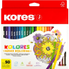 Színes ceruza KORES - háromszögű, jobb- és balkezes, ergonomikus markolat, papír felületekre, hagyományos színek, puha ceruzabél, papír csomagolás, 50 ceruza a csomagban Kores Kolores Mandalas 50 darabos színes ceruza készletSzerezd be a Kores Kolores Mandalas készletet, amely 50 színes ceruzát tartalmaz széles színskálával. A magas pigmenttartalom biztosítja, hogy a