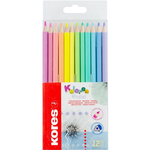 Színes ceruza KORES - háromszögű, jobb- és balkezes, ergonomikus markolat, papír felületekre, hagyományos színek, puha ceruzabél 3 mm átmérővel, papír csomagolás, 12 ceruza a csomagban A minőségi KORES színes ceruza mindenkit elrepít a színek és a fantázia világába. Háromszög kialakítása hozzájárul kényelmes használatához. Ez a legkisebbeknek való jó minőségű színes ceruza a legfiat