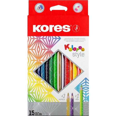 Színes ceruza KORES - háromszögű, jobb- és balkezes, ergonomikus markolat, papír felületekre, hagyományos színek, puha ceruzabél 3 mm átmérővel, papír csomagolás, 15 ceruza a csomagban Egy ilyen KORES színes ceruza készlet mindenkit elrepít a gazdag színek és a határtalan fantázia világába. Rendkívül kényelmes dolgozni vele háromszög formájának köszönhetően. Ez a piciknek való színe