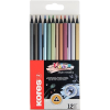 Színes ceruza KORES - háromszögű, jobb- és balkezes, ergonomikus markolat, papír felületekre, metál színek, puha ceruzabél 3 mm átmérővel, műanyag csomagolás, 12 ceruza a csomagban Eme KORES színes ceruza készlet mindenkit elrepít a gazdag színek és a határtalan képzelet világába. Háromszög kialakítása hozzájárul kényelmes használatához. Ez a legkisebbeknek való színes ceruza má