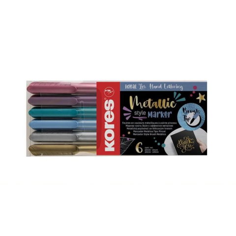 KORES Metallic Style ecsetirón készlet 6 metál szín (21461) (kores21461) filctoll, marker árgrafikon