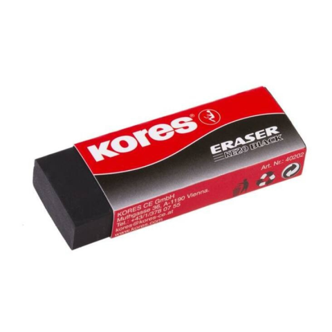 Alkalmas minden grafitceruzához. -puha, nem morzsolódik -fekete szín -latexmentes -méret: 60x21x10 mm -papírtokban Gyártó/első EU forgalmazó elérhetősége: Kores Europe s.r.o. Nivka 336, 3578 Strmilov, Czech Republic strmilov@kores.cz www.kores.com