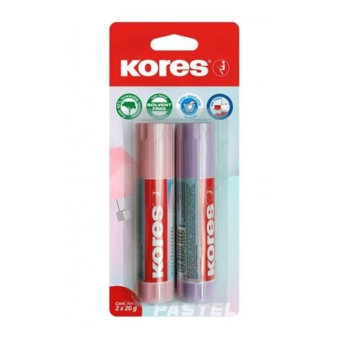 1 kép KORES Ragasztóstift, pasztell színű tokban, 2x20 g, KORES, vegyes színek