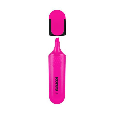 Szövegkiemelő, 0,5-5 mm, KORES, rózsaszín - vágott hegy - élénk szín, a tinta színével megegyező tolltest - klippel ellátott kupak - vízbázisú tinta - vonalvastagság: 0,5-5 mm - UV-álló Gyártó/első EU forgalmazó elérhetősége: Kores Europe s.r.o. N