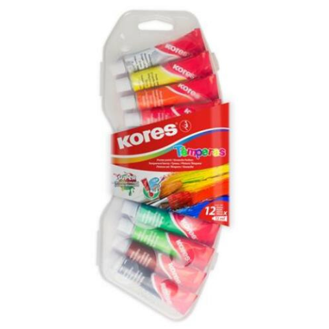 Tempera készlet, 12 ml, KORES, 12 különböző szín -ideális iskolai, kreatív és művész tevékenységhez egyaránt -könnyen vegyíthető színek -festékkeverőként funkcionáló tető -használható papíron, kartonon, festővásznon Itt megtekinthető és letölthet