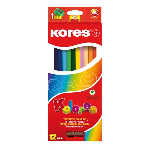 Színes ceruza készlet, háromszögletű, KORES "Triangular", 12 különböző szín