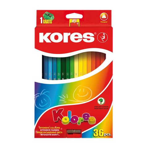KORES Triangular háromszögletű Színes ceruza készlet 36db-os színes ceruza termékleírás