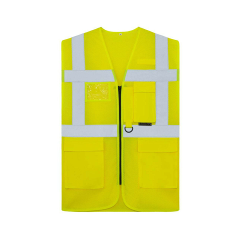 HÁLÓS PRÉMIUM MELLÉNY LARISA Multifunkcionális hálós jól láthatósági mellény cipzárral és zsebekkel Kényelmes viselet magas hőmérsékleten is, köszönhetően a hálós anyagnak és a laza szabásnak Kiváló láthatóság: két 5 cm széles fényvisszaverő csík kör