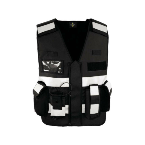 TACTICAL SAFETY VEST BONN Stílusos taktikai mellény figyelemfelkeltő fényvisszaverő csíkokkal Teljes hosszú cipzár elöl, megerősítve egy hajtókával Rugalmas használat különféle zsebeknek köszönhetően Különböző, cserélhető párnák, amelyek nyomtatási