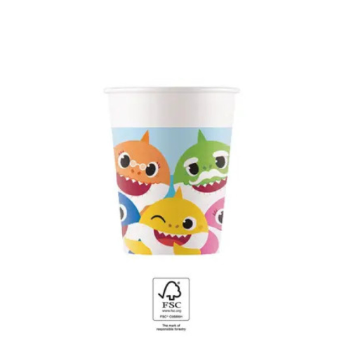 Baby Shark papír pohár 200 ml 8 db pohár/csomag Anyaga: papír FSC (Forest Stewardship Council)