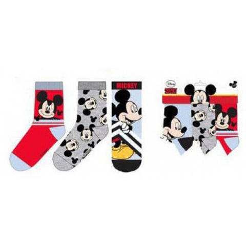 Disney Mickey Gyerek zokni Anyaga: 70% pamut, 18% poliészter, 10% poliamid , 2% elasztán. Az ár 3 pár zoknira vonatkozik! 3 féle minta! Méret: 31/34
