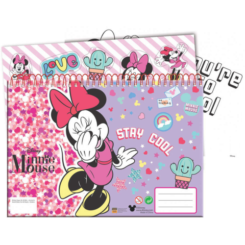Disney Minnie A/4 spirál vázlatfüzet 40 lapos 1 ív matricával és 3 db színezhető képpel! Méret: A/4 (23*33cm)