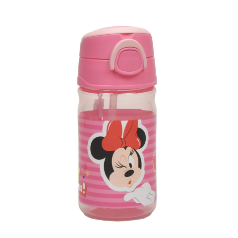 Disney Minnie Wink műanyag kulacs akasztóval 350 ml Disney Minnie kulacs akasztóval Pattintható kupak, amely védi a szívószálat. Anyaga: műanyag BPA mentes Űrtartalom: 350 ml