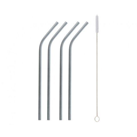 1 kép KORREKT WEB Ezüst Silver fém szívószál 4 db-os + kefe