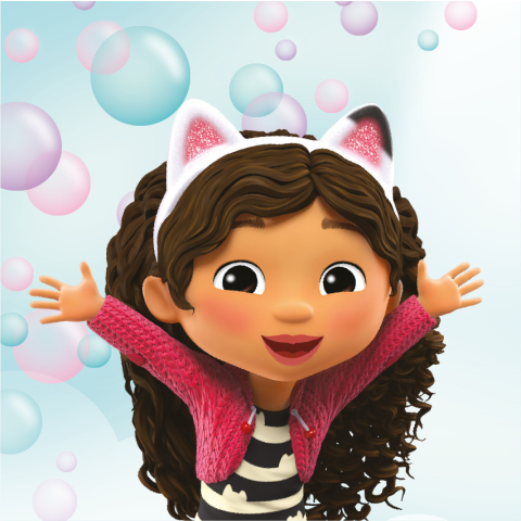 Gabby's Dollhouse, Gabi babaháza arctörlő kéztörlő Mérete: 30x30 cm Anyaga 100% pamut.