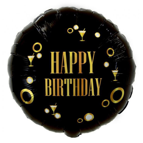 1 kép KORREKT WEB Happy Birthday Black-Gold Party fólia lufi 36 cm