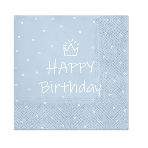 1 kép KORREKT WEB Happy Birthday Light Blue szalvéta 20 db-os 33x33 cm