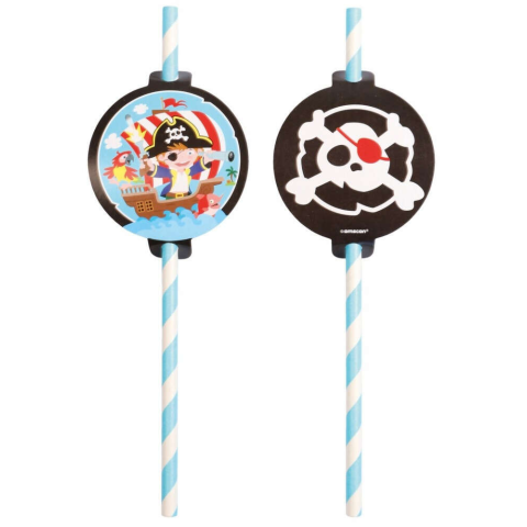 Pirate, Kalóz papír szívószál, 8 db-os szett Méret: 19,7 cm