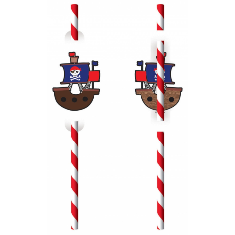 Pirate, Kalóz papír szívószál, 8 db-os szett Méret: 19,7 cm