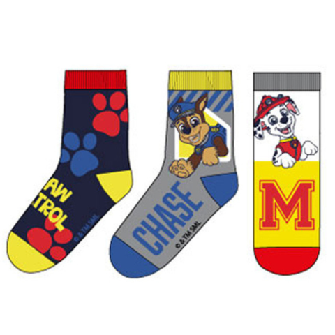 Paw Patrol, Mancs Őrjárat Gyerek zokni Anyaga: 40% pamut, 55% poliészter, 3% viszkóz, 2% elasztán. Az ár 3 pár zoknira vonatkozik! Méret: 31/34