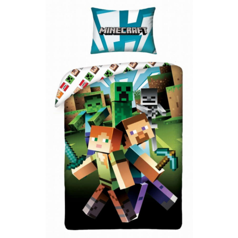 Minecraft ágyneműhuzat. Anyaga:100% pamut. Kitűnő színtartó anyagból készül. Minősége: I osztályú. Mérete: 140×200cm, 70×90 cm