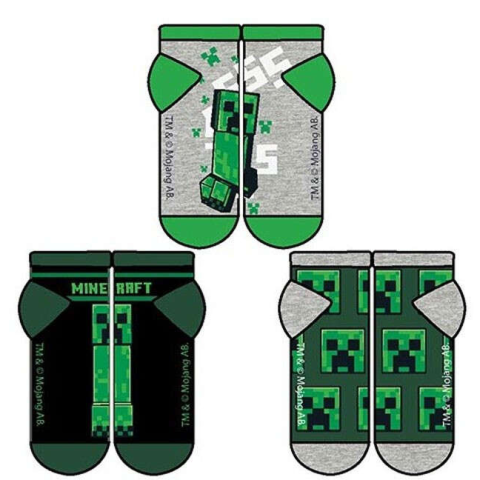 Minecraft gyerek titokzokni Az ár 3 pár zoknira vonatkozik! Anyaga: 70% pamut + 28% poliészter + 2% elasztán. 3 féle minta! Méret: 27/30