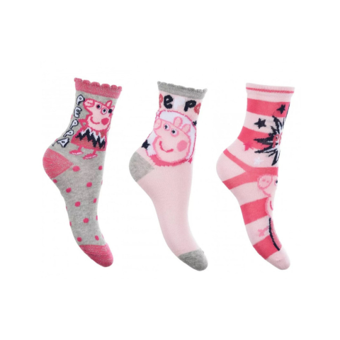 Peppa Pig, Peppa malac Gyerek zokni Az ár 3 pár zoknira vonatkozik! Anyaga: 70% pamut + 18% poliészter + 10% poliamid + 2% elasztán. 3 féle minta! Méret:31/34