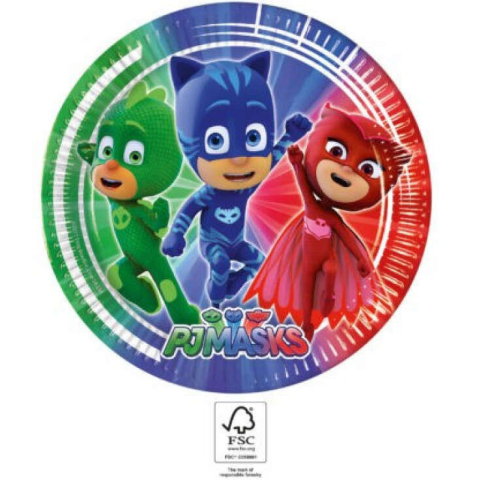 PJ Masks, Pizsihősök papírtányér 8 db-os 23 cm FSC 8 db tányér/csomag Anyaga: papír FSC (Forest Stewardship Council)