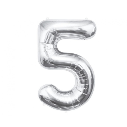 1 kép KORREKT WEB Silver, Ezüst 5-ös szám fólia lufi 85 cm