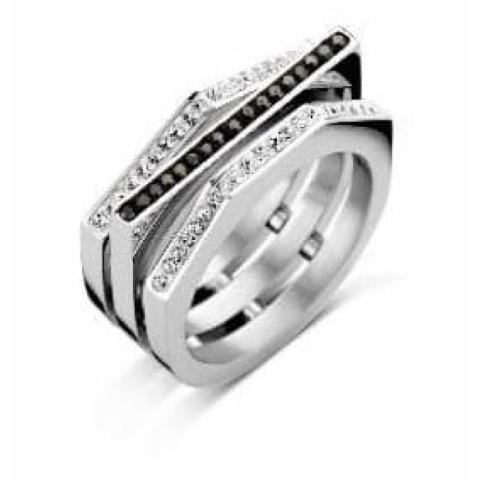 Victoria Ezüst színű fekete, fehér köves gyűrű Ezüst színű. Anyaga: rozsdamentes acél Méret: 54 (17,2 mm)