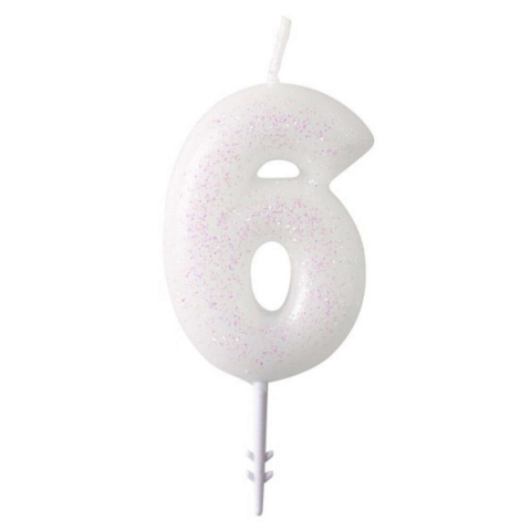 White, Fehér csillámos gyertya 6-os 6,5 cm Mérete: 6,5 cm