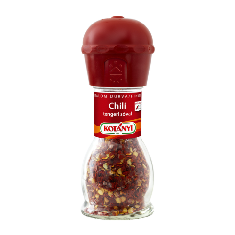 35 g-os chili tengeri sóval; Kotányi termék chilis ételek készítéséhez.