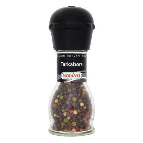 Fűszermalom KOTÁNYI tarka bors 35 g A KOTÁNYI Tarkabors az a keverék, amivel az aromás, pikáns, borsos íz a legharmonikusabban elérhető. A négyféle bors íze különböző, de egymást tökéletesen kiegészítve összhangot alkotnak.